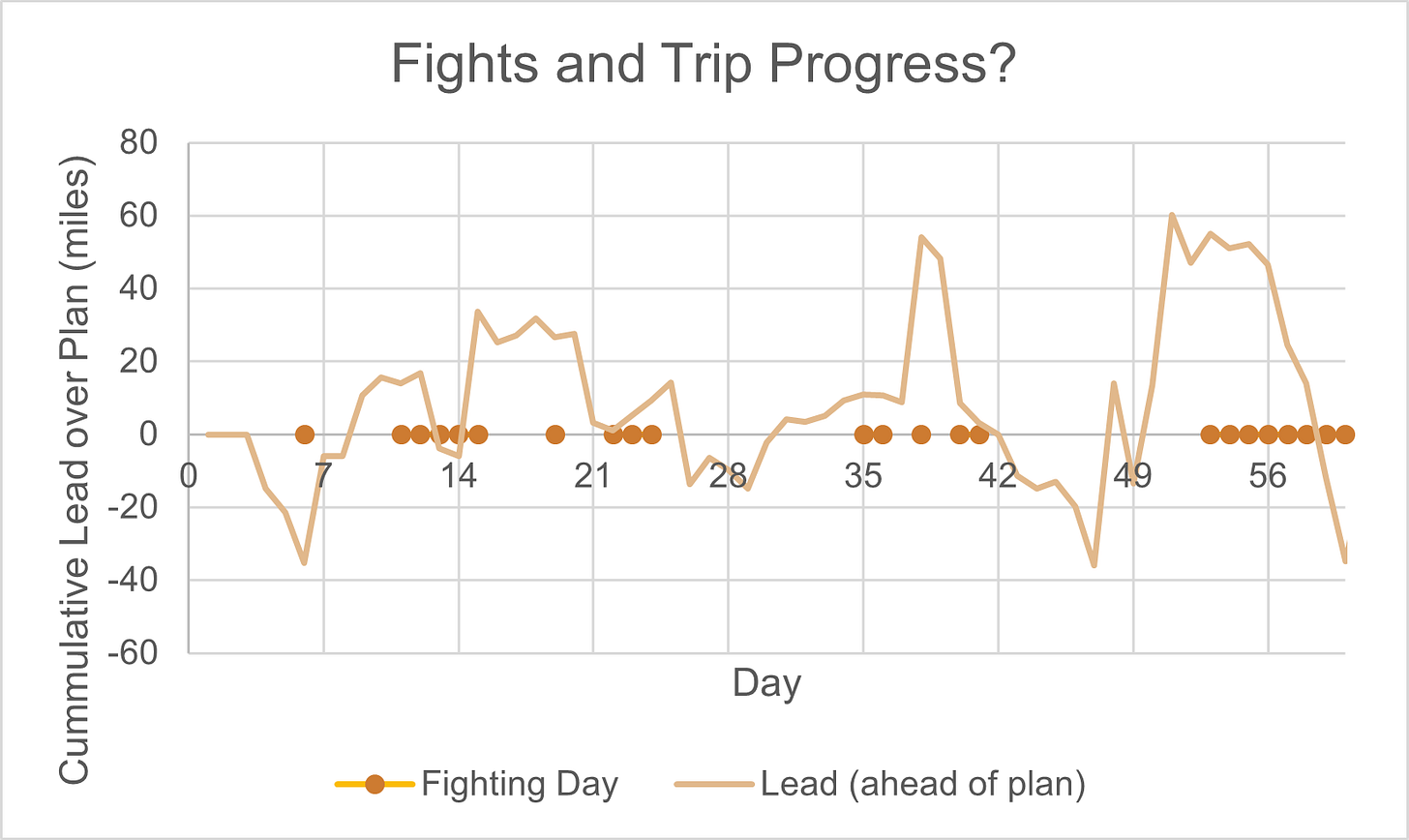 Two months on the river will test any friendship. When we started logging our arguments in the blue journal, I hoped the data might explain them. It didn’t. The dots refused to line up neatly. There’s no neat correlation between mileage, weather, showers or stress. What it shows instead is that we kept trying. It’s evidence that affection can survive friction—and maybe even grow from it. Turns out the trick isn’t avoiding conflict— it’s learning to keep paddling despite it.