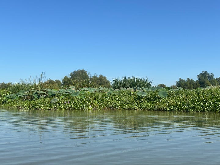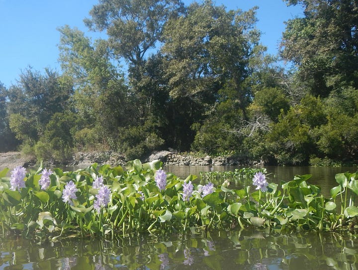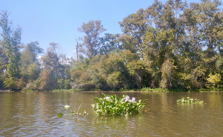 Hog Bayou is a windy path through the swamp with abundant vegetation (but not in a bad way), consistent flow, and dozens of alligators. It was some of my favorite paddling of the whole trip, with a quick but gentle current, lots of riverbends that were still wide enough for my boat to easily make, and plenty of interesting plants and animals to look at and listen to as we passed. Sydney felt misled, having expected something more akin to a cypress swamp than a slow moving river. She was also less than thrilled with the gators!
