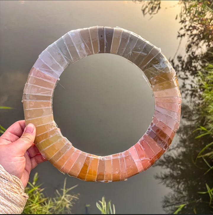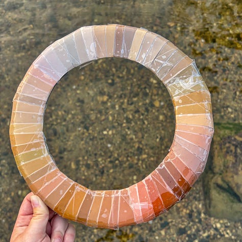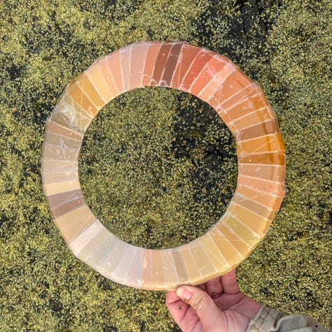 The boborometer is what happens when you admire an 18th-century scientist a little too much and also have access to the paint chip selection of Home Depot. Modeled after Horace-Bénédict de Saussure’s cyanometer—a ring used to measure the blueness of the sky, and, by extension, its moisture—the boborometer replaces noble sky hues with the earthier palette of river sludge. The name comes from the Greek βόρβορος, meaning “mire” or “filth,” and it does live up to both. Technically it was meant to gauge turbidity, but the sun and water kept interfering, so I pivoted to comparing riverbank mud tones instead. It turns out there are more shades of Mississippi brown than any paint catalog dares admit.