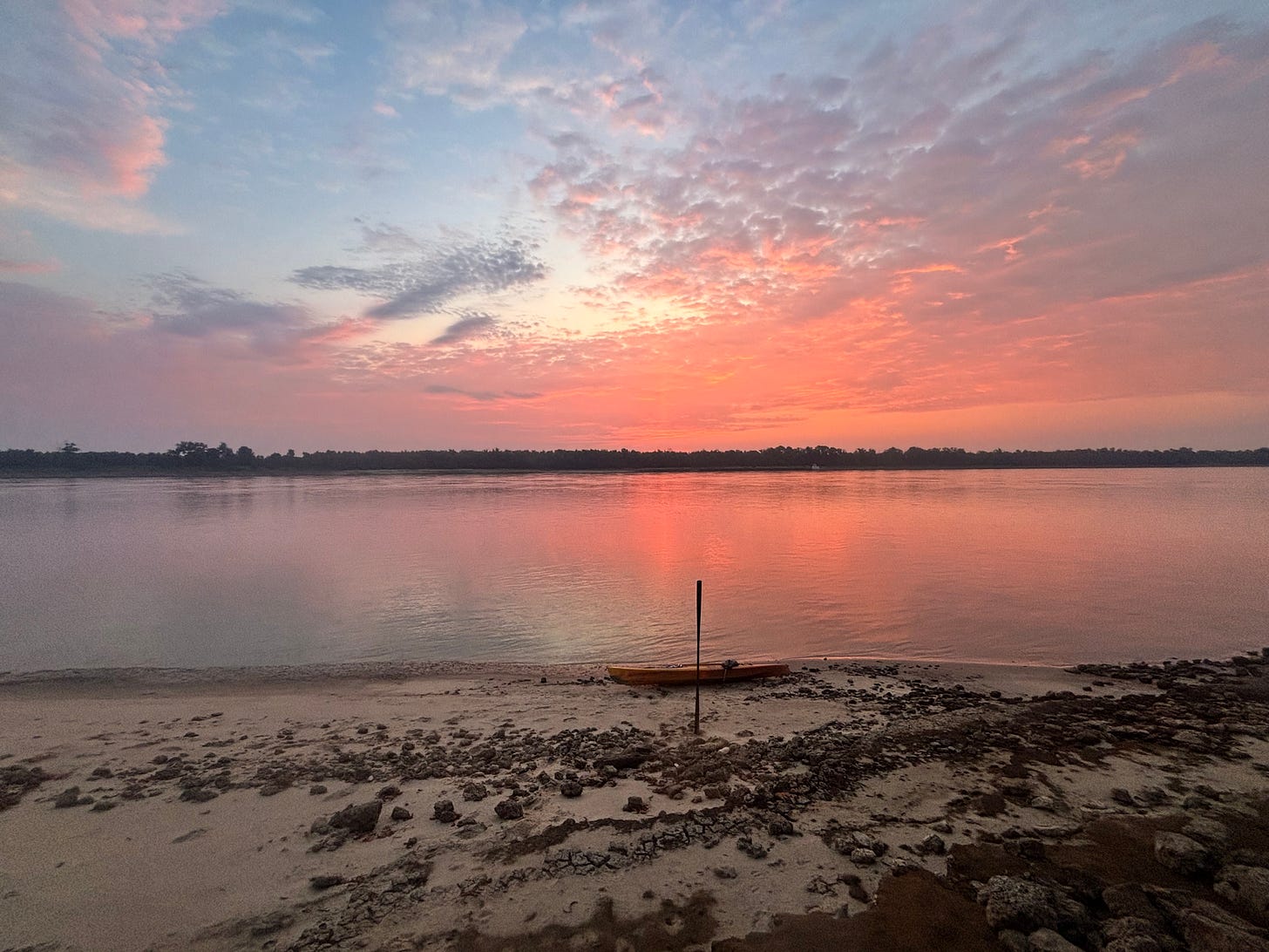 And so to make up for the time lost in the storm, we once again decided to paddle through the night. This was our least pleasant night paddle of the entire trip. We were wet, tired, and without the light of the moon due to clouds. We kept hitting sandbars. Fortunately, with Leah’s previous quicksand experience, we knew that we’d need to keep firm grasps on our boats every time we got out. The sand is never as solid as it seems!