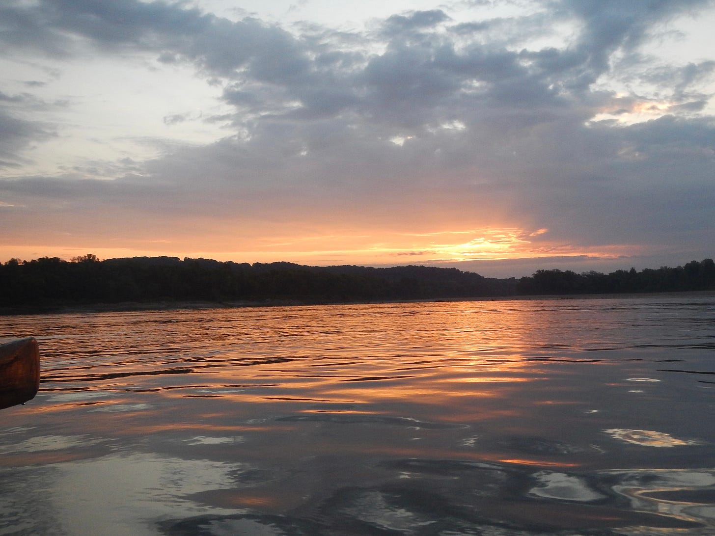 Around 5:30, we reached the confluence of the Ohio and Mississippi Rivers. Leaving our boats bobbing, we climbed up the observation deck for a better view. I expected a dramatic color difference between the two rivers, or even just a more violent swirling of water where the two rivers met. The Ohio comprises nearly 2/3rds of the Mississippi’s total volume, but it’s been a low water year for both bodies.