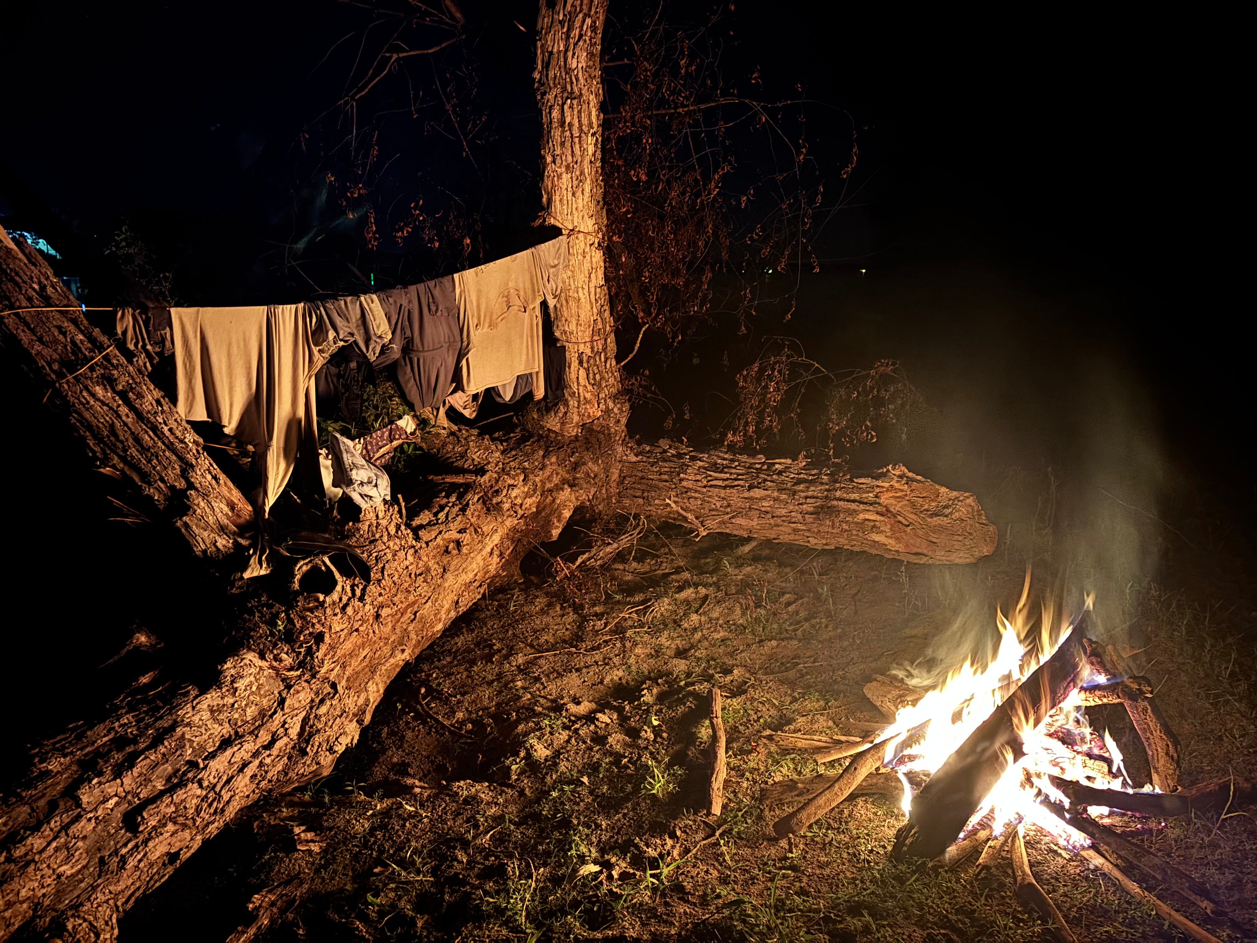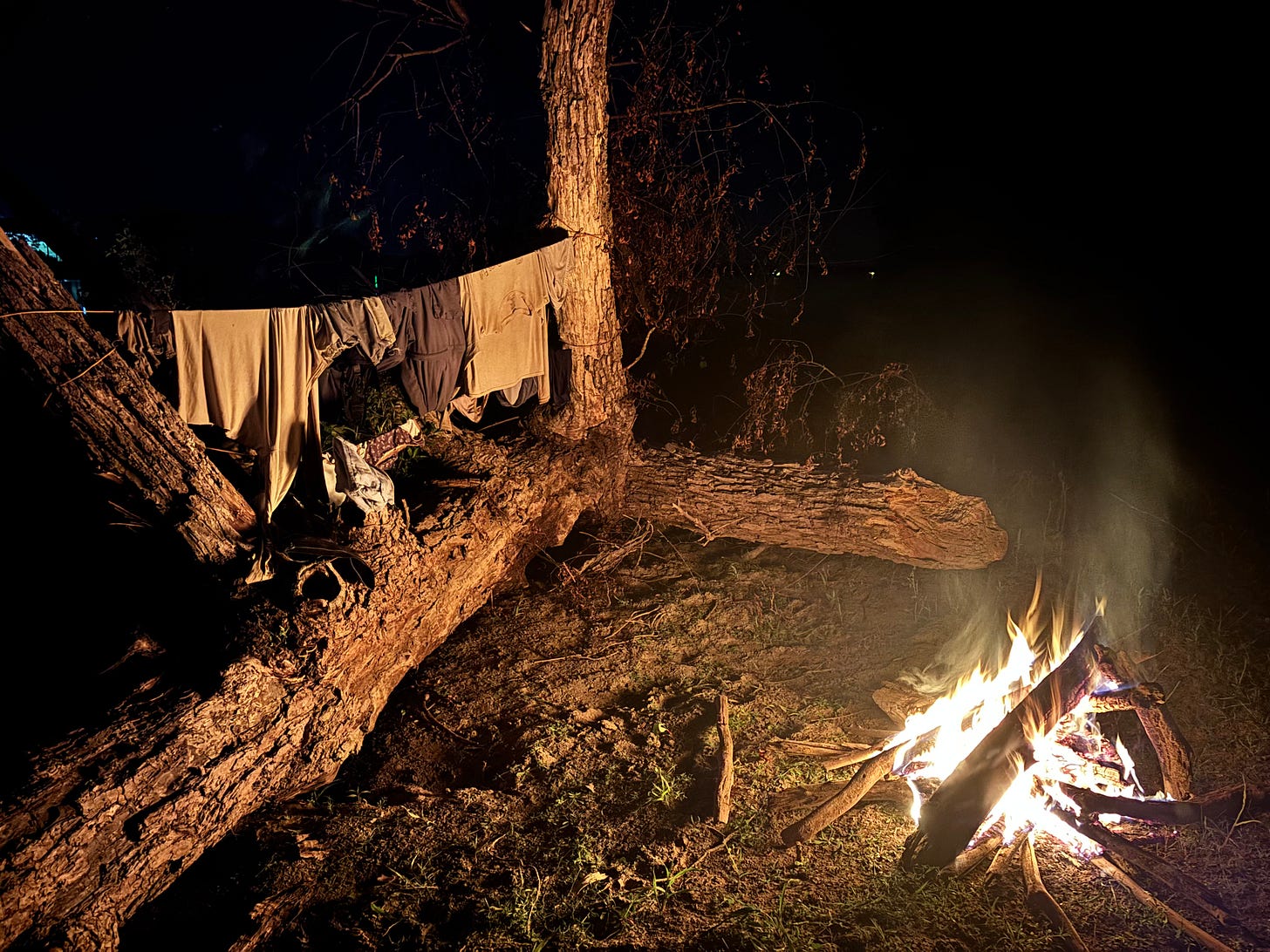Partway through the 43rd day, we saw a large billow of smoke appear above the trees. It ballooned across the sky, lit from below with flickering orange light. Large particulates akin to corn husks fell while we debated whether or not we should call the fire department.