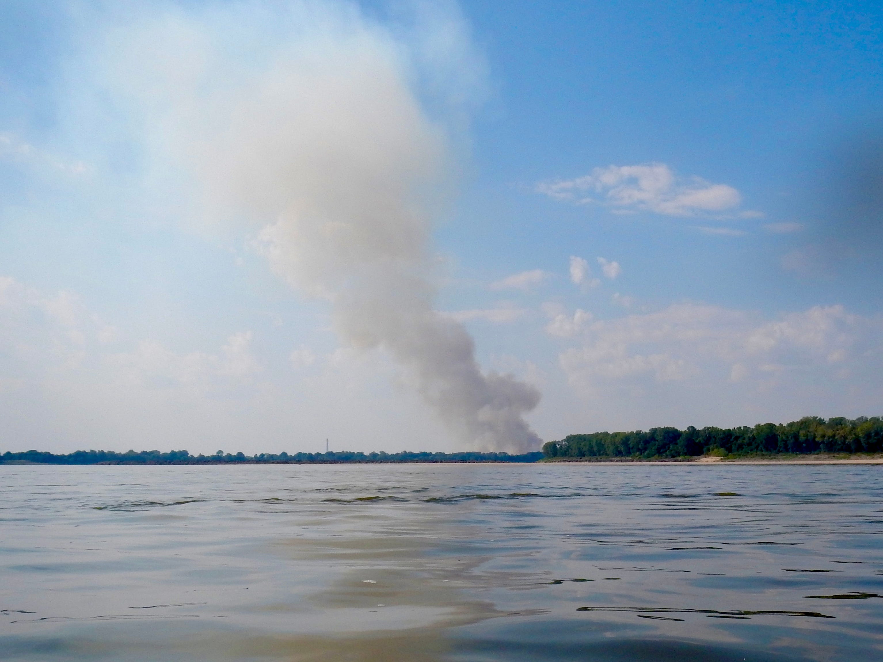 As though that was not bad enough, we eventually paddled into a cloud of industrial off gas so thick and oily you could taste it. Choking and spluttering, we paddled several miles through the cloud, coming uncomfortably close to barges and rocks along the way.