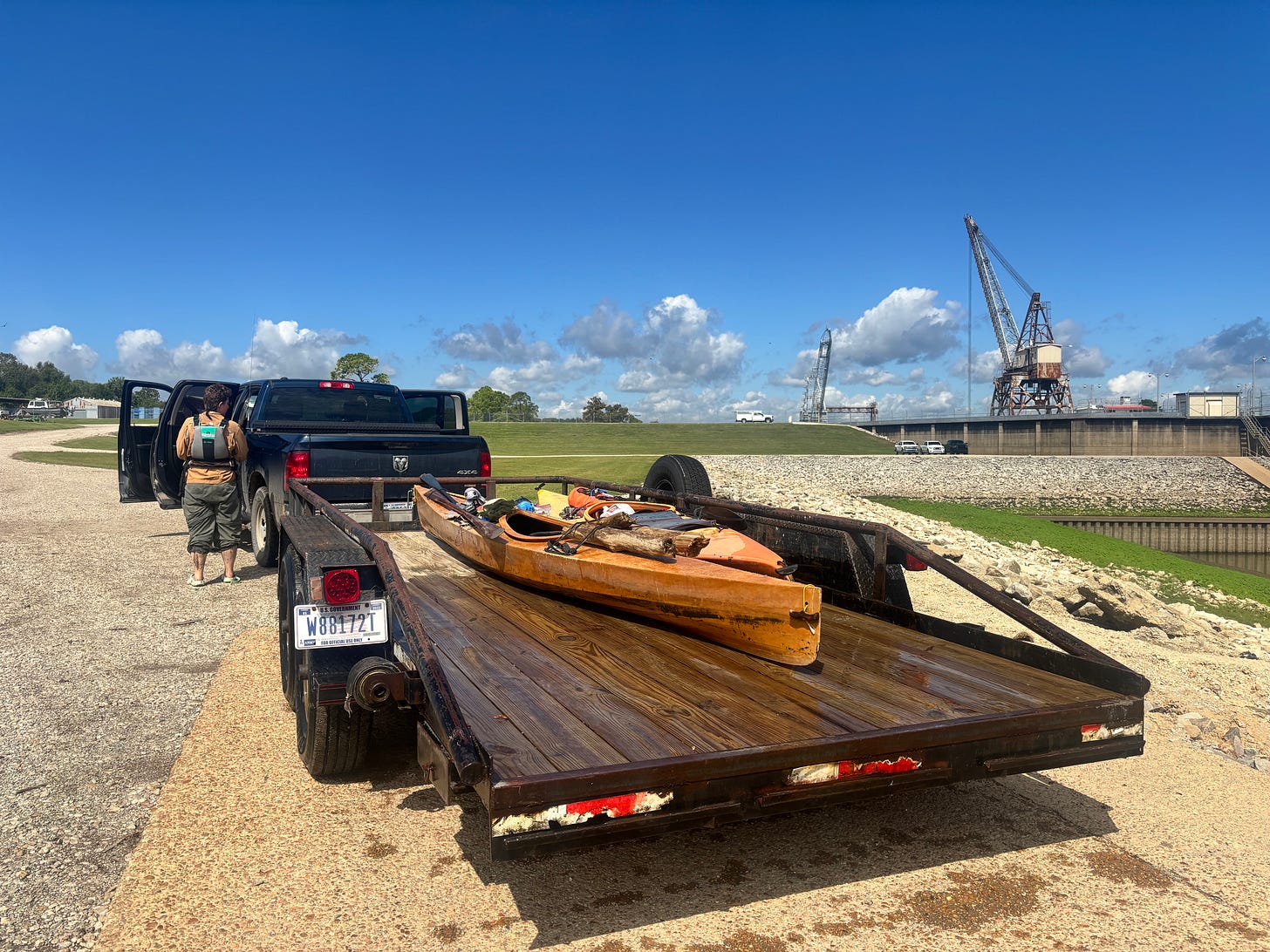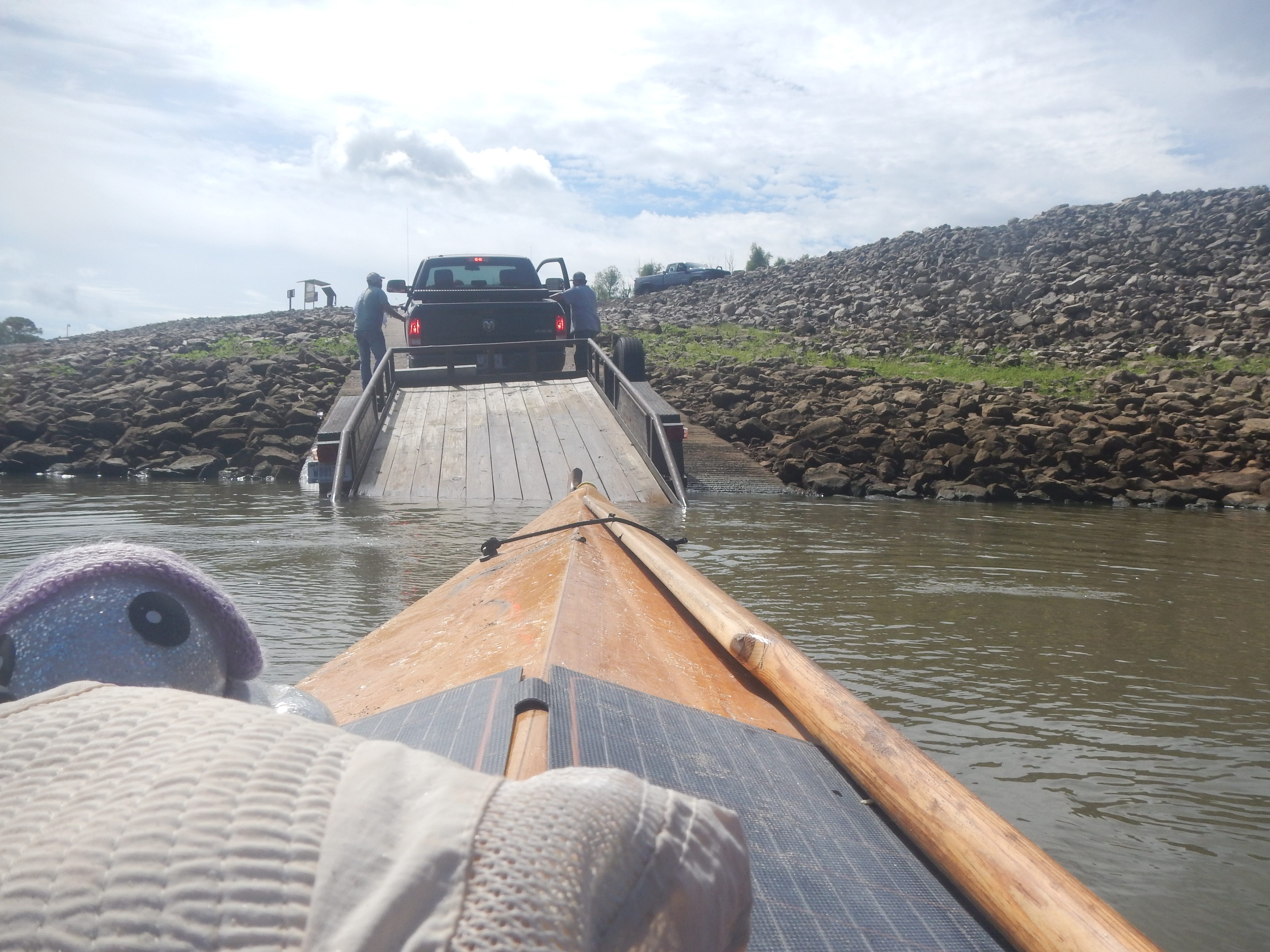 The lockmaster was out, but the men manning the dam took pity on us. They let us approach and take out at the lock’s boat ramp while they tried to find a solution.