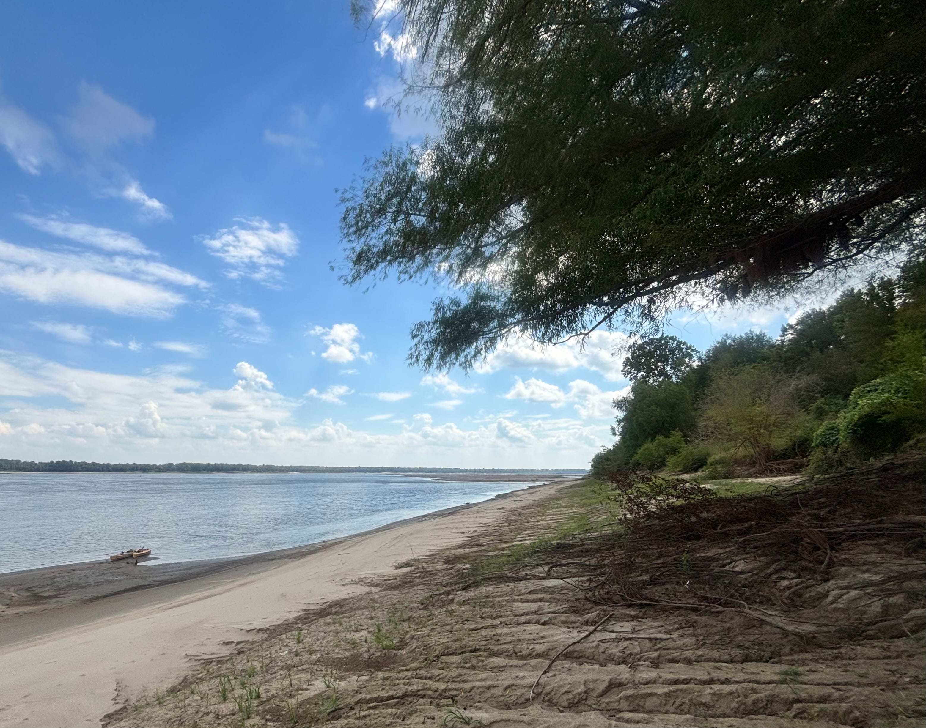 We spent our 54th day struggling to reach Natchez before dark. At first, we seemed ahead of schedule! Then we got separated by a string of barges, several of which were pulling over out of channel. Soon enough, we understood why: Just as we came back together, an afternoon thunderstorm storm rolled in. Wind pushed waves against us, and for thirty minutes the river turned into chaos. We were caught between barges and river bank too steep to stop. Leah’s boat, tippy on a good day, almost went over twice, getting so deep in the waves that the water in her boat came up to her knees (shout out to Emily and Justin for boat flipping practice before the trip - it was helpful for knowing how to brace with a boat full of water)