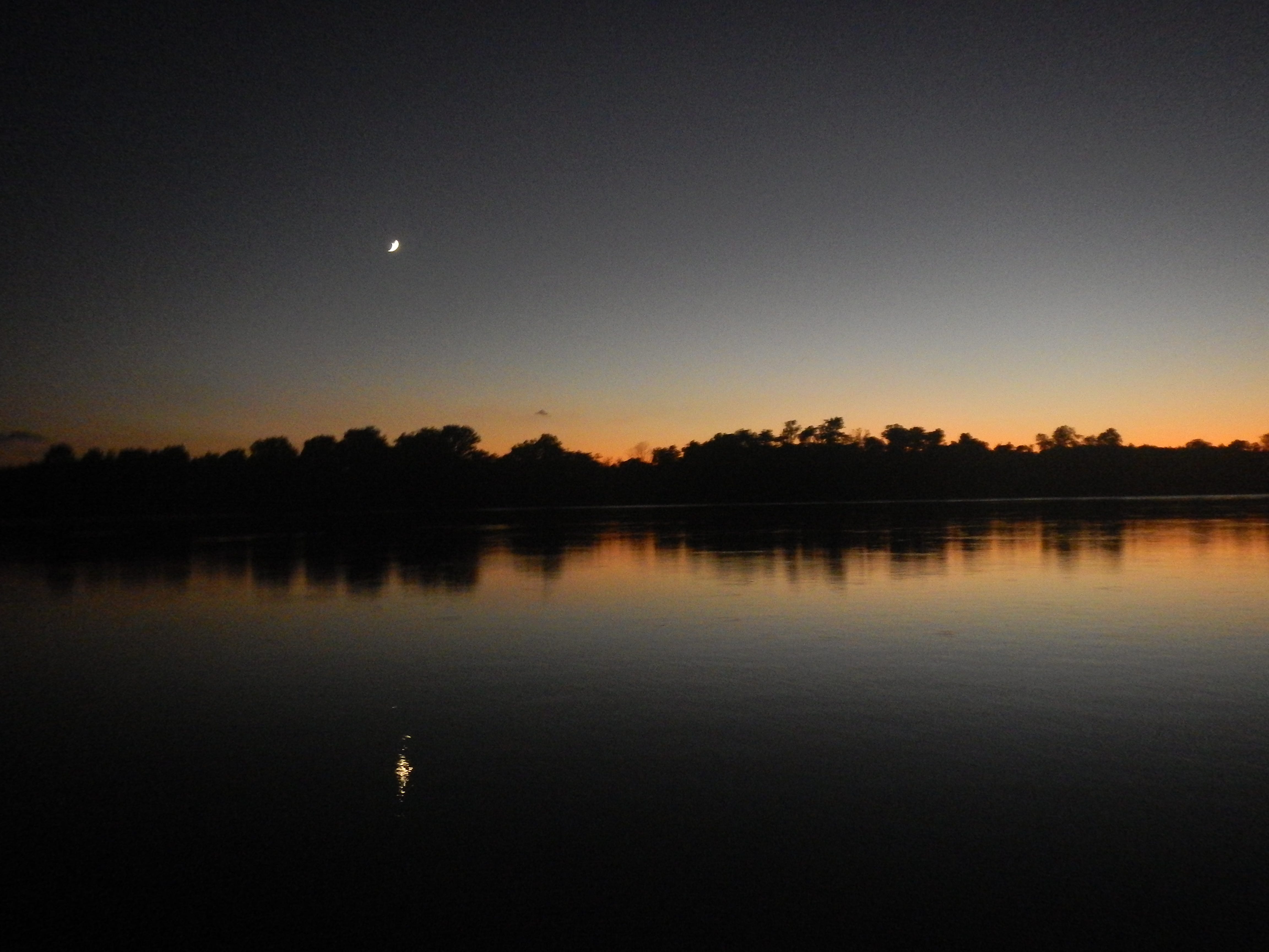 With a decision made about the finale, we paddled on into an afternoon full of storms. At one point, we did pull over to shelter from lightning, but we largely paddled through the rain. We once again paddled through the night to reach our mileage goal, dodging barges left and right. Our new pucks flashed red, like the channel markers, and we worried barges were being drawn toward us in confusion. Worn out from the day, we decided to have dinner before collapsing to bed.