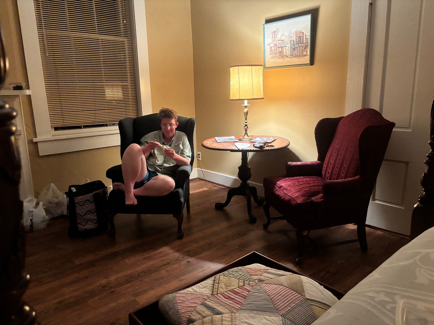 When the storm finally passed, we paddled through the dark to Natchez. The city is still a busy port, and we needed to cross the channel without any lights to warn larger boats of our presence. Fortunately, Mike became a beacon on the boat ramp, shining a flashlight and calling out support. With our lights flickering and our nerves frayed, we finally made it safely to the Mark Twain Guest House above Under the Hill Saloon. While we showered and regrouped, Mike went on a mission to replace the pucks.